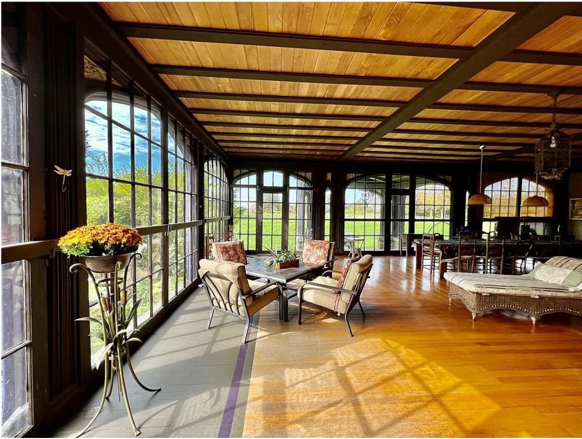 An unparalleled opportunity! Elmwood Farm is a magnificent 25.5-acre equestrian estate crowned by a 15,000 sq. ft., 43-room Elizabethan Style manor house (c. 1860) atop Quaker Hill. This stately residence boasts 17 beds and 13 baths, and is rich with exquisite, hand-carved details like pilasters, plaster motifs, and a grand staircase featuring whimsical animal carvings….