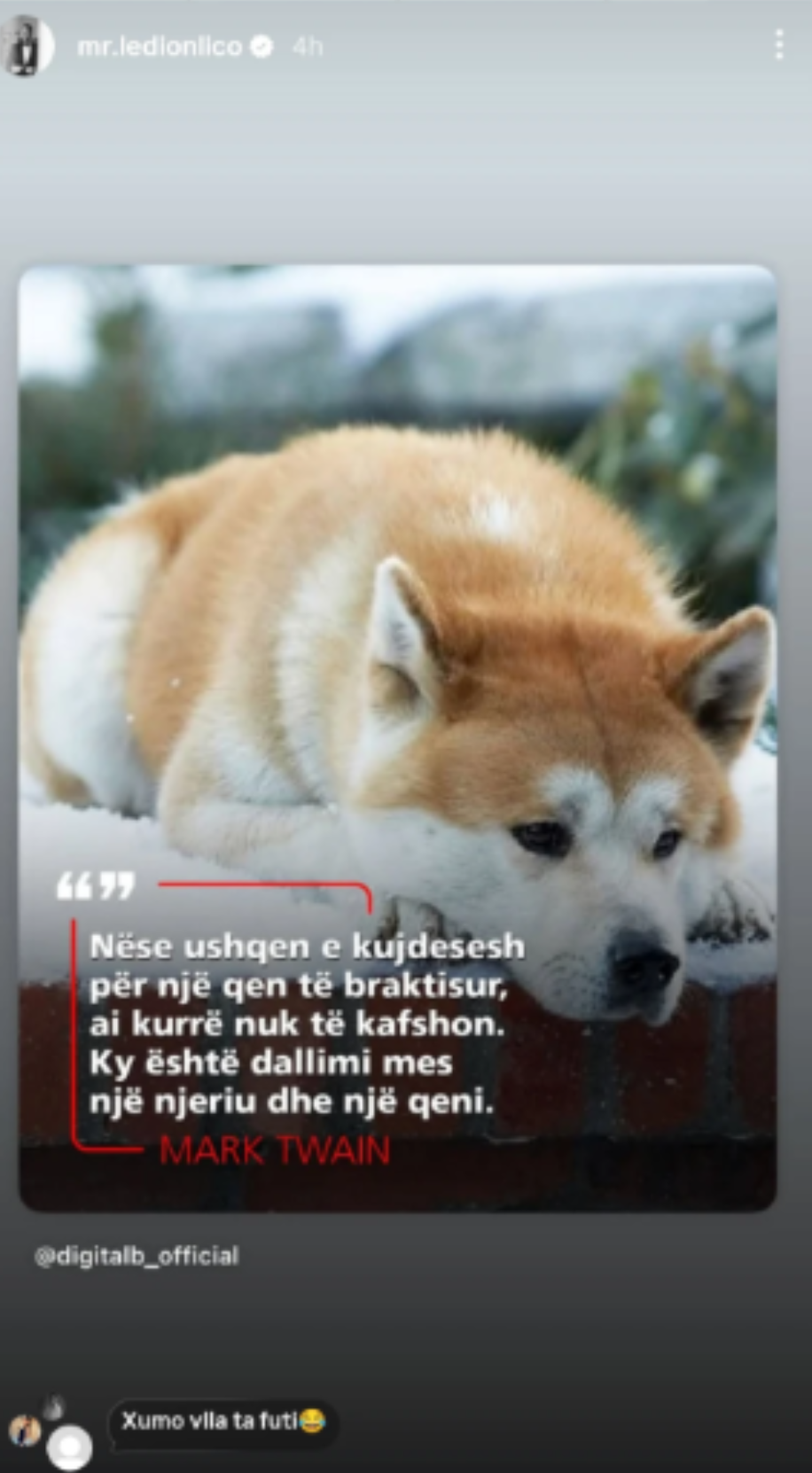 Pas këtij thumbi, Ledion Liço ka shpërndarë një fotografi në InstaStory me një thënie të shkrimtarit Mark Twain, e cila shihet si përgjigje ndaj situatës së krijuar.