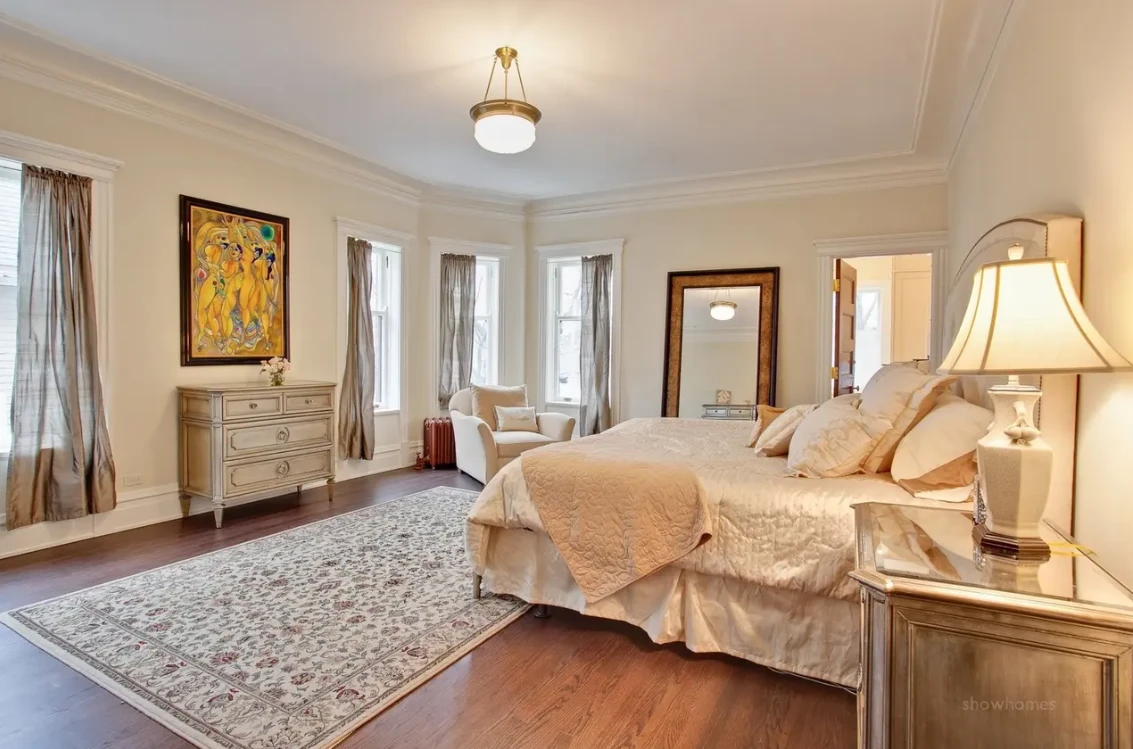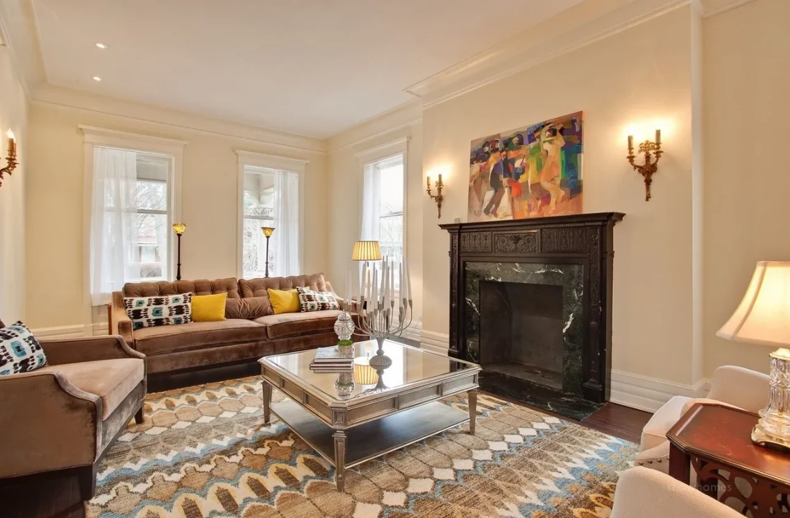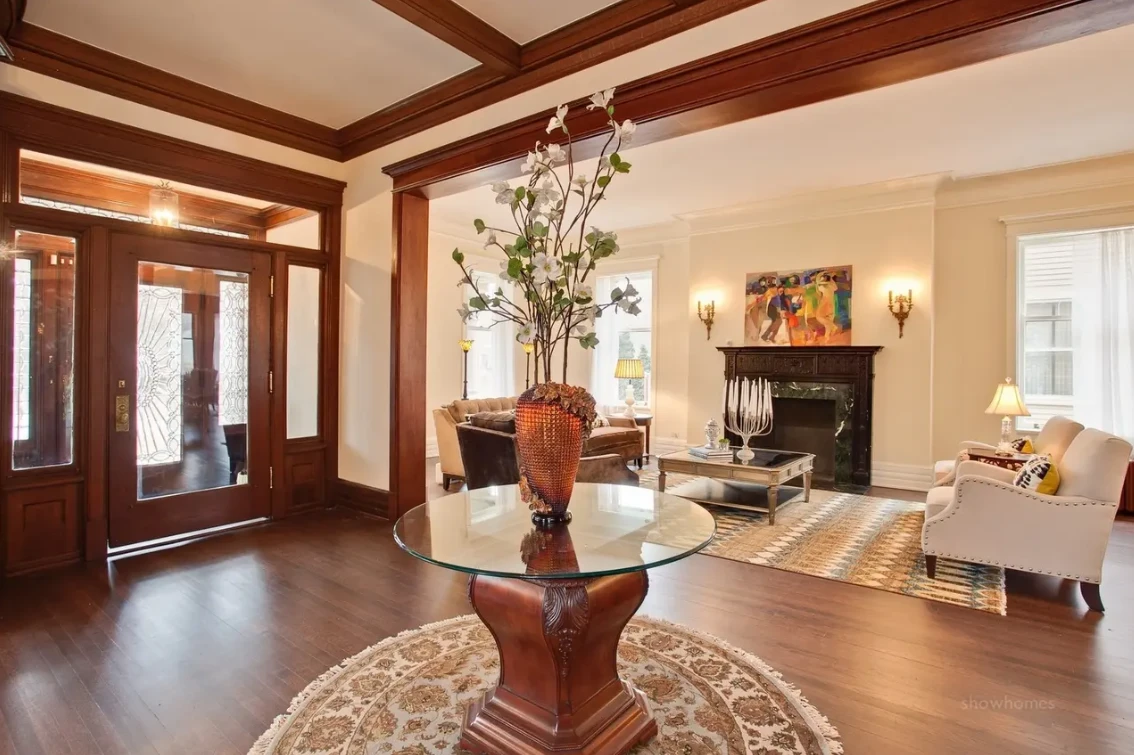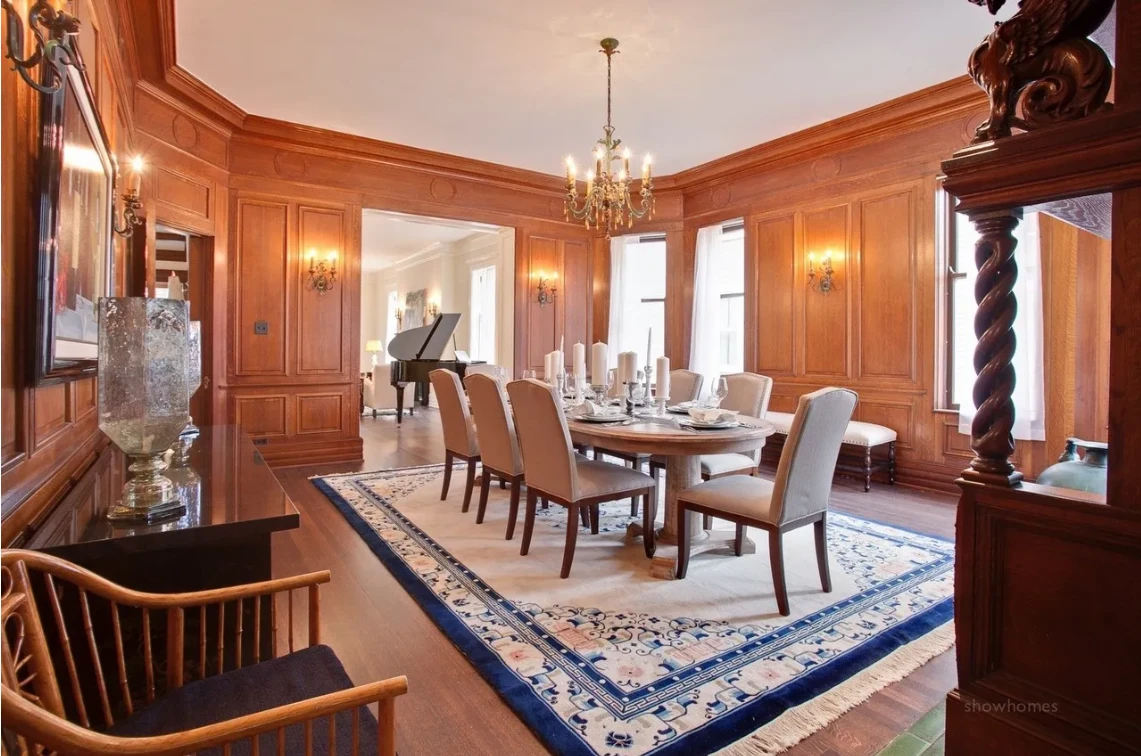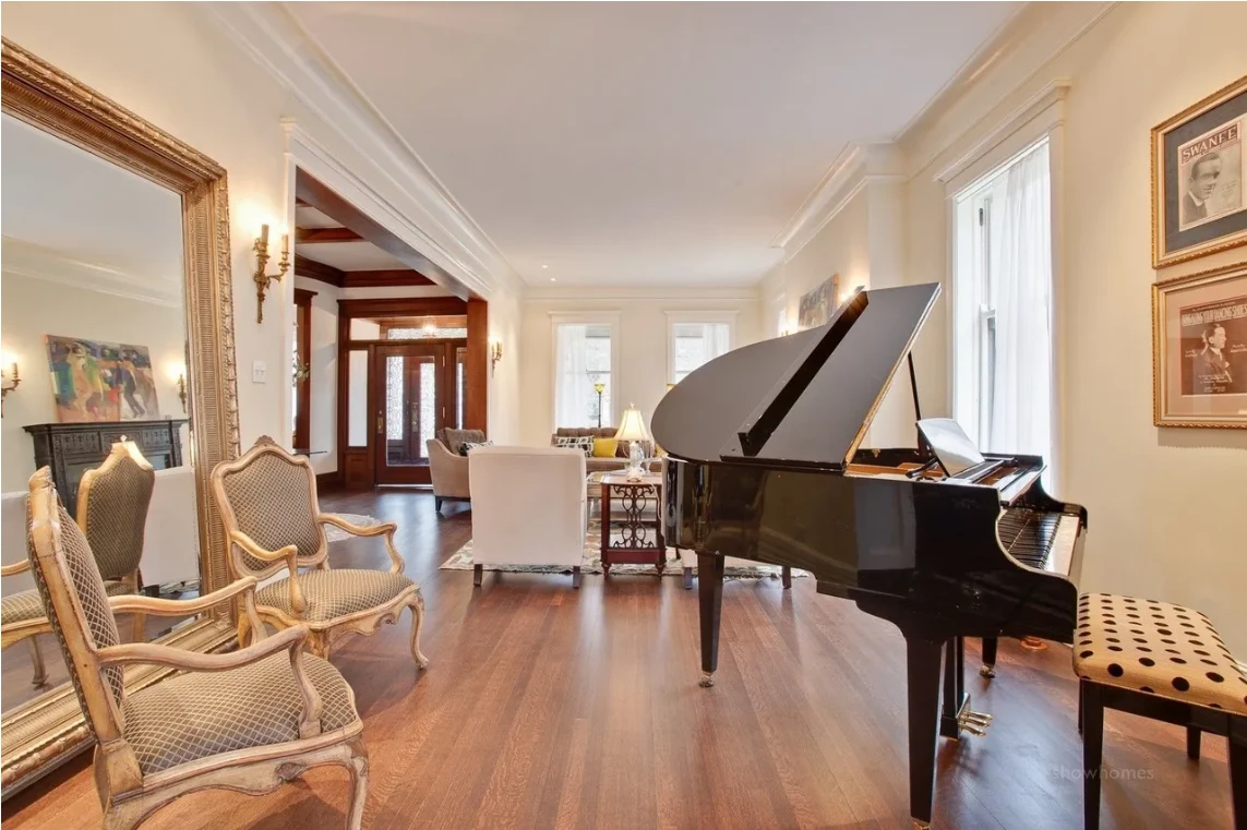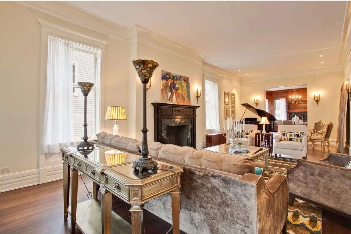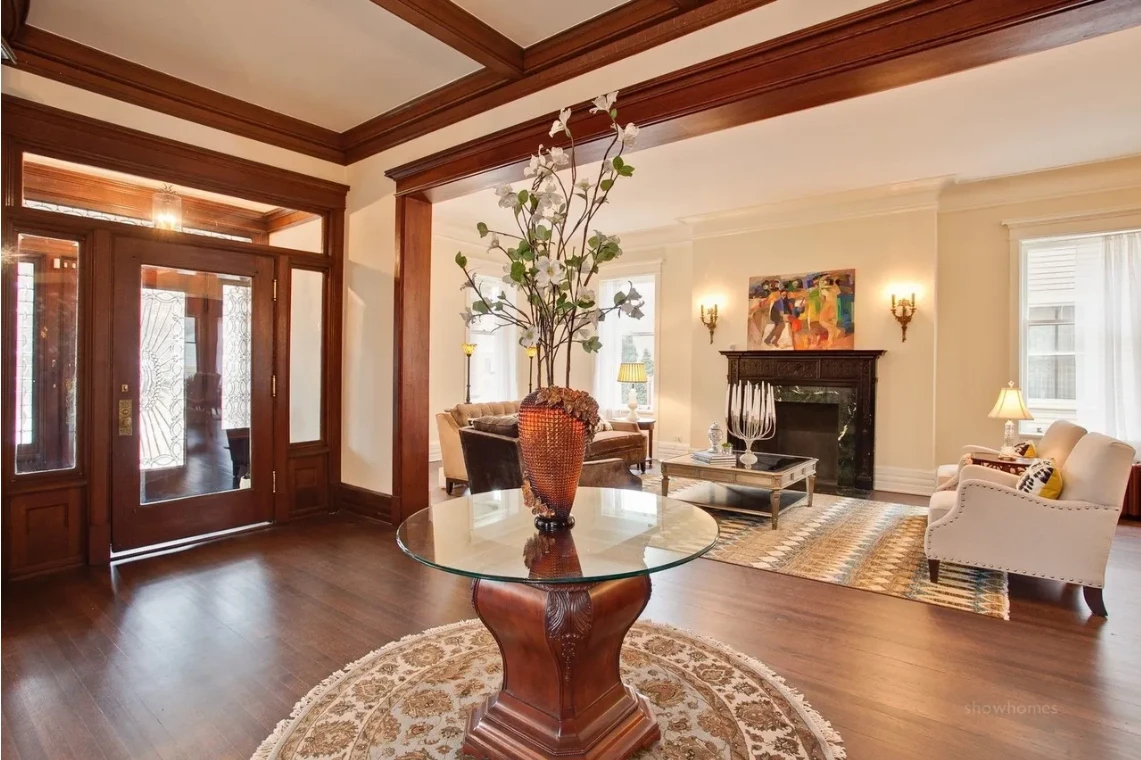 Inside, the mansion reflects the opulence of the Gilded Age: expansive formal rooms, high ceilings, detailed woodwork, and leaded glass windows. Original features such as hand-carved staircases, ornate fireplaces, and decorative plaster moldings have been carefully preserved, maintaining the home’s historic character while blending seamlessly with later restorations.